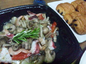 手長エビのパスタは金粉がかかってて、セルフなのにこのクオリティにビックリ。