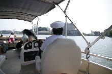 いい天気で遠くの景色もよく見えました 船を操縦しながら解説してくれます