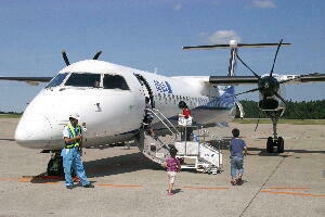 ジェット機を想像していましたが、秋田便はプロペラ機・・・。